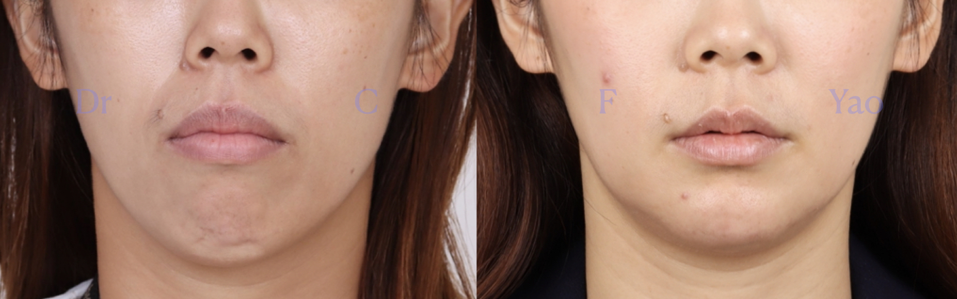 診斷:戽斗臉型、第三級咬合異常合併前牙開咬、顏面不對稱
